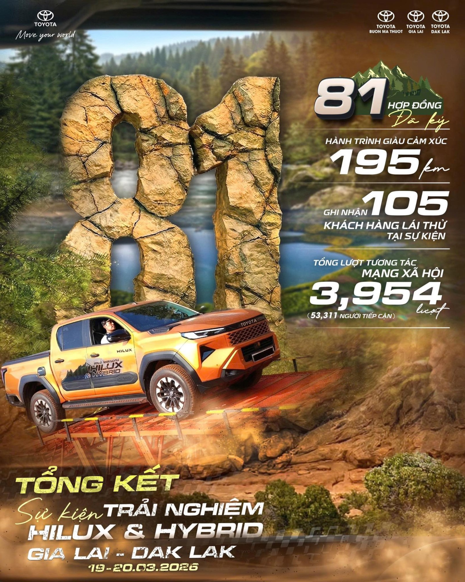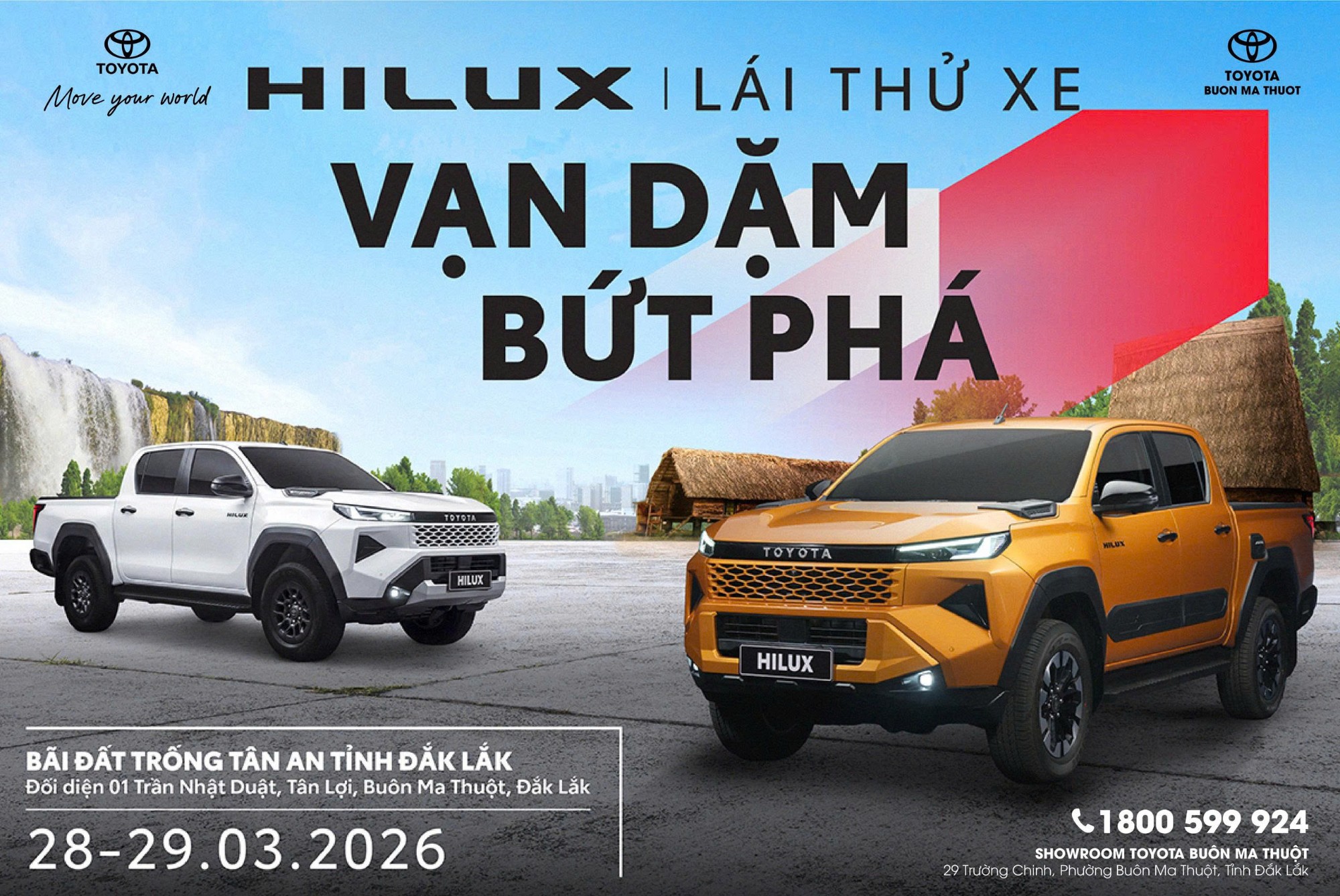 Tiếp nối thành công tại Gia Lai, Toyota Truong Group chính thức mang chuỗi sự kiện trải nghiệm Toyota Hilux & Hybrid 2026 đến Đắk Lắk vào ngày 28 – 29.03.2026.